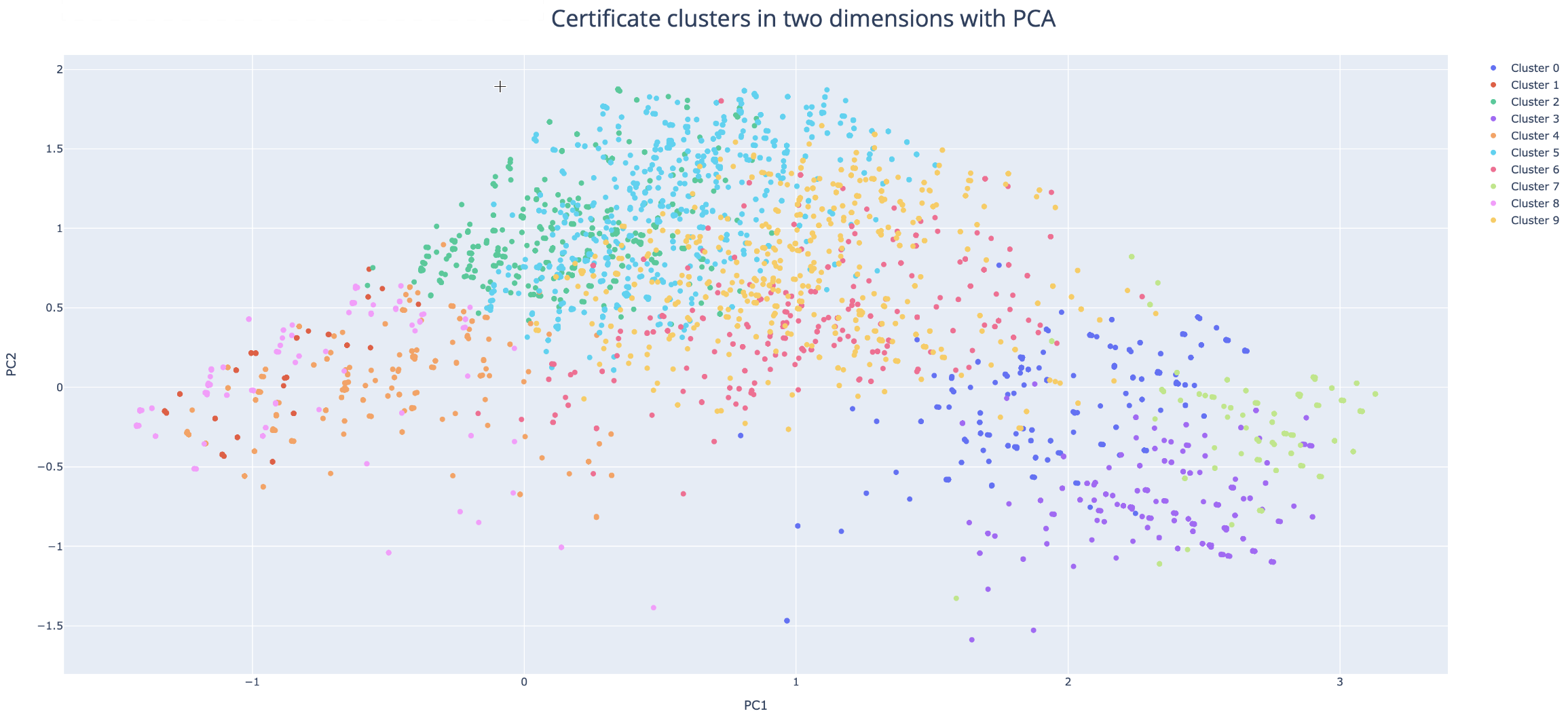 Venafi is excited to release of the Machine Identity Spectra large dataset. This collection of data contains extracted features from 19m+ certificates discovered over HTTPS (port 443) on the public internet between July 20 and July 26, 2023. The features are a combination of X.509 certificate features, RFC5280 compliance checks, and other attributes intended to be used for clustering, features analysis, and a base for supervised learning tasks (labels not included). Some rows may contain nan values as well and as such could require additional pre-processing for certain tasks.